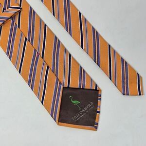 TAILORBYRD HANDMADE ITALY SILK TIE ORANGE BLUE REGIMENTAL STRIPE WOVEN 4" X 60"