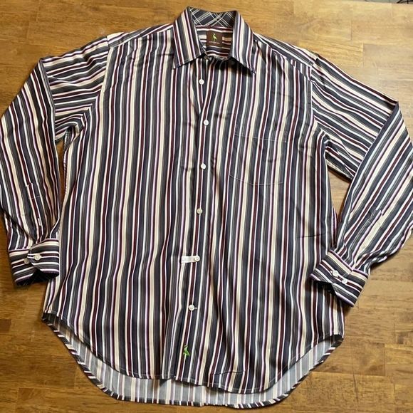 TAILORBYRD LONG SLEEVE BUSINESS DRESS DARK STRIPES LARGE 100% COTTON ULTRA SOFT