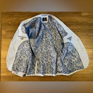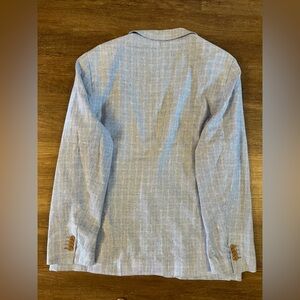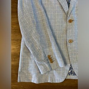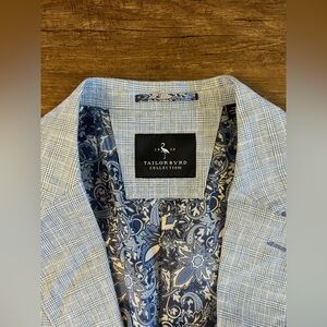 TAILORBYRD Men's 44R Linen Blend Casual Sport Coat Blazer Blue Plaid B41