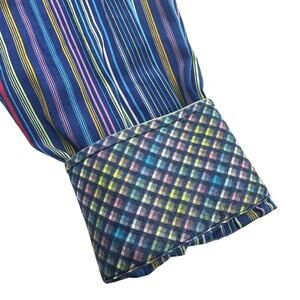 TAILORBYRD Mens XL Button up Shirt Long Sleeve Rainbow Stripe Contrast Flip Cuff