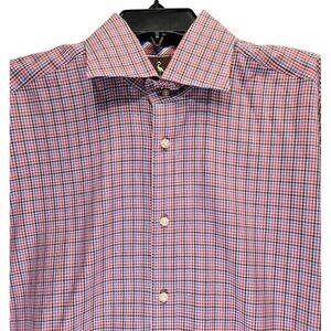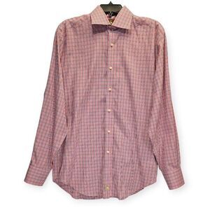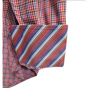 TAILORBYRD Shirt Mens Medium Button Up Plaid Preppy Classic Logo Red Blue