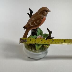 TAJ Importing Co Robin On Branch Bird Music Box Porcelain Japan/San Francisco VTG