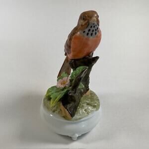 TAJ Importing Robin On Branch Bird Music Box Porcelain Japan/San Francisco VTG