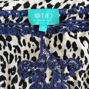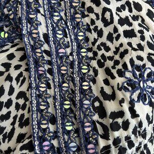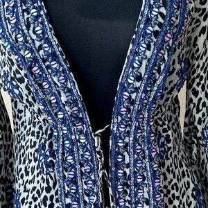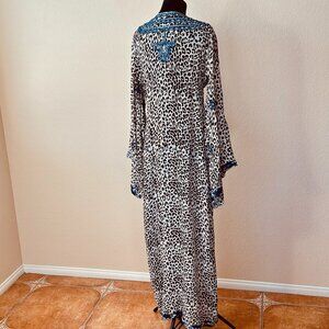 TAJ by Sabrina Crippa M 100% Silk Leopard Print Kimono Sequin Embroidery Maxi