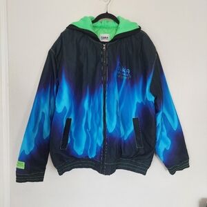 TAKA ORIGINAL Waterproof Flame Jacket Size XXL. Pre-owned. Missing its drawstring and faint discoloration in the neck area. Overall in great condition