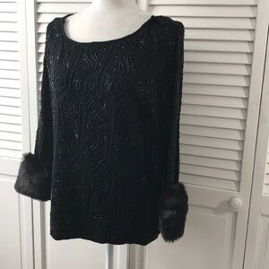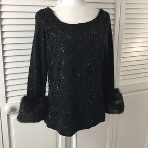 Details: The collective works of Berek 2 heavy Sweater with Faux Fur around the cuffs and bead and sequin embellishments