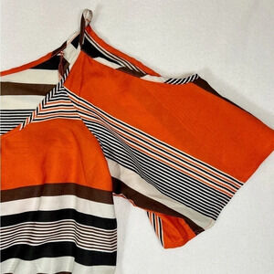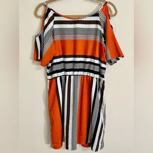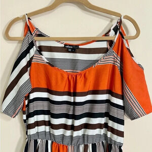 TAKARA Women's Cold Shoulder Multi-Colored Striped Midi Dress Pockets Size Large