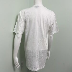 Screen printed white tee with oops on the lettering in “look”