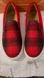 NIB AUTHENTIC BETTYE MULLER ‘BENTLY’ RED & BLACK PLAID FLANNEL (WOOL/POLYESTER FABRIC) SLIP ON SNEAKERS. SYNTHETIC SOLE; ELASTIC GORES AT THE SIDE. SOFT, COMFORTABLE & WARM SNEAKERS.