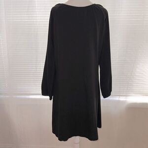 TAKE TWO M Black Boho Embroidered Scoop Neck Tie Front Balloon Sleeve Dress