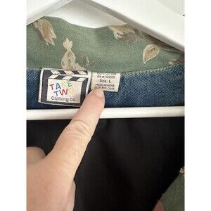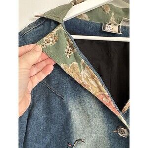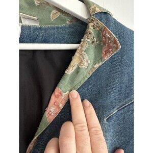 TAKE TWO VINTAGE DENIM JACKET FLORAL BEADED ACCENTS Size L Buttons