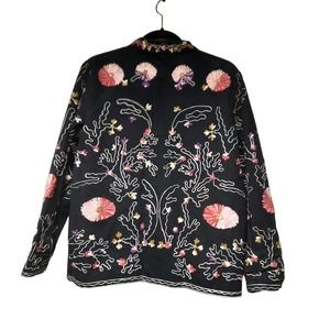 TAKE TWO WOMEN'S M BLACK FLORAL EMBROIDERED BOHO BUTTON UP LONG SLEEVE JACKET
