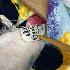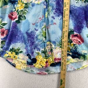 TAKEAWAY Top Womens L Floral Print Sleeveless Shirt Blouse Cotton Blue Vintage