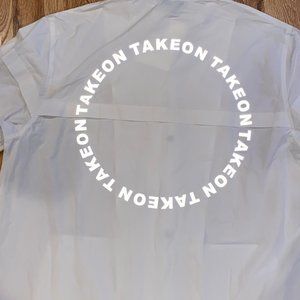 TAKEON Hooded Raincoat White Size Large Unisex Water Repellant Reflective Womens