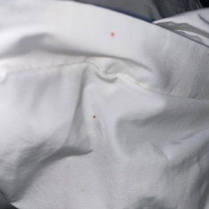 FLAW: There are to pen point size dots on the inside of the back flap. Not noticeable when worn. Barely visible from the inside.