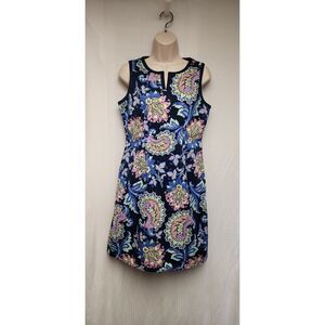 TALBOLTS PAISLEY SHIFT SLEEVELESS DRESS SIZE 6P MULTICOLR BLUE.