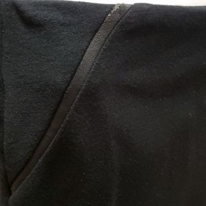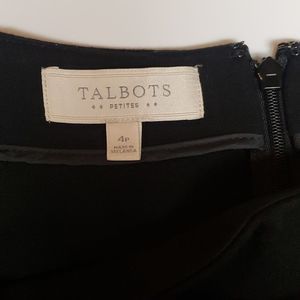 This black Talbots skirt is in great pre-owned condition, only signs of wear is on the top of the faux leather trim on one side. Hidden back zipper, back split, stretchy material.
