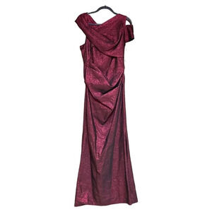 TALBOT RUNHOF Moa Burgundy Metallic Asymmetric Evening Gown Size 14