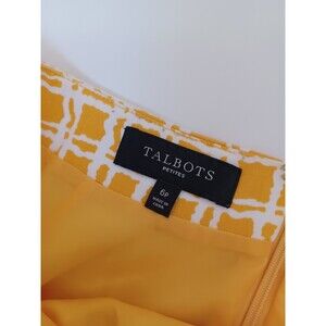 TALBOTS 100% Cotton Pencil Slit Skirt Geometric Yellow White 6P. Condition is Pre-owned.