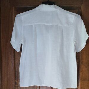 TALBOTS 100% IRISH LINEN TOP- WHITE-SIZE 8 PETITE- FRONT POCKET