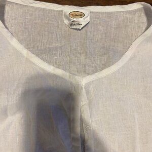 TALBOTS 100% Irish Linen Top Womens Button Up Ivory 3/4 Sleeve Shirt Washable