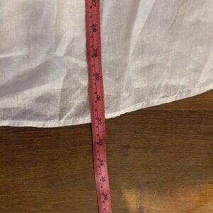 This Talbots 100% Irish Linen Top is a versatile and stylish addition to any wardrobe. Featuring a V-neck, 3/4 sleeves, and button-up closure, this ivory top is perfect for various occasions including travel, casual outings, or business meetings. Made from lightweight and breathable linen fabric, this top is both comfortable and easy to care for as it is machine washable. With a vintage touch and a timeless laganlook style, this top embodies a minimalist and quiet luxury aesthetic that is perfect for any season.