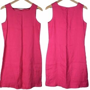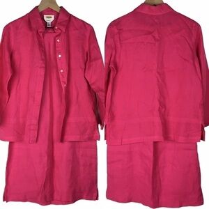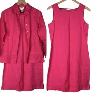 TALBOTS 100% Irish Linen Vintage Dress + Jacket Set Hot Pink Petite Size 4P