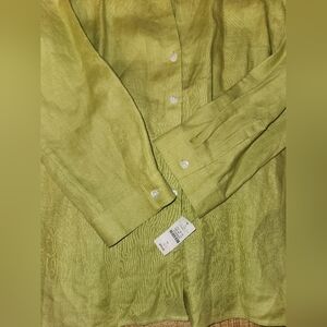 TALBOTS 100% Irish Linen Women’s Button Down Shirt, Green, size 16