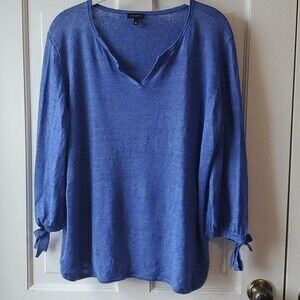 TALBOTS 100% LINEN BRIGHT BLUE SWEATER SIZE LARGE
