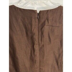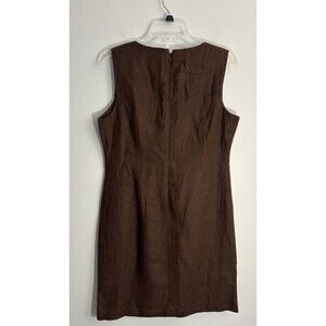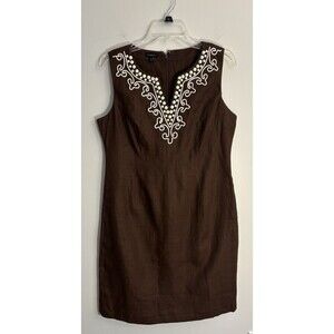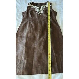 TALBOTS 100% Linen Shift Dress Women 10 Brown White Beaded Sleeveless Career NEW