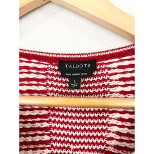 TALBOTS 100% Merino Wool Checkered Knit Cardigan Sweater Large Festive Holiday