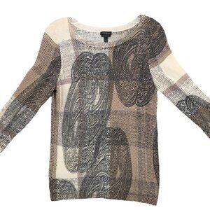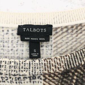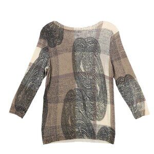 TALBOTS 100% Merino Wool Knit Top 3/4 Sleeve Beige Paisley Multi Pattern SMALL