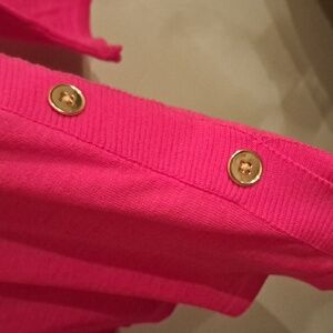 Talbots Light Weight Hot Pink Sweater/ Shirt with Two Gold Buttons on Each Side of Lower Sweater.