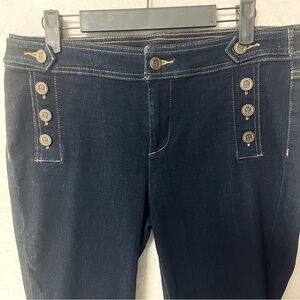 TALBOTS 10P WOMENS DARK WASH BUTTONS STRETCH COTTON BLEND DATE NIGHT 70'S JEANS. Cute Buttons, Cotton Stretch Blend. Size 10P
