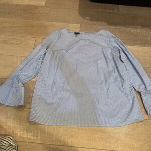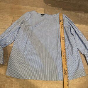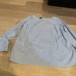 TALBOTS 1X WOMENS BLUE STRIPE BUTTON BACK BLOUSE SHIRT LONG SLEEVE