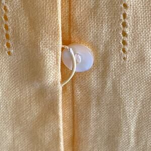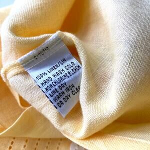 TALBOTS size 8 100% Irish linen button down sleeveless top with side slits and shell buttons. Yellow. The bottom 3 buttons elastic still works but may need re-attached at some point.