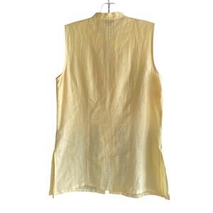 TALBOTS 8 Irish Linen Button Down Sleeveless Top Side Slits Yellow Beachy