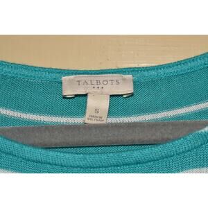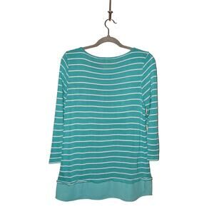 TALBOTS $80 Teal Striped 3/4 Sleeve Crewneck Tunic top w/ Layered Hem Small