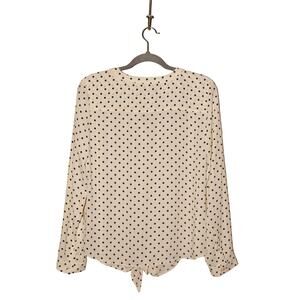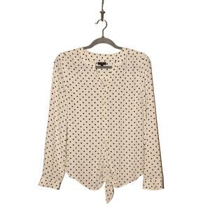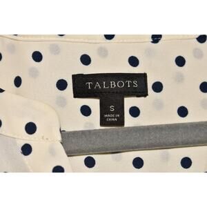 TALBOTS $80 White Navy Polka Dot V-Neck Button Down Blouse Tie Bottom Small