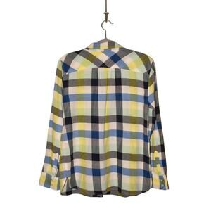 TALBOTS $89 Lightweight Cotton Plaid Button-Up Shirt Blue Yellow Gray Medium