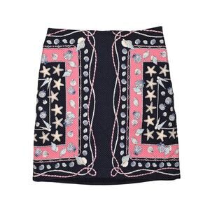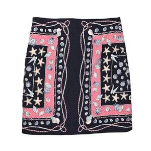 TALBOTS $89 Navy Pink Nautical Seashell Textured Pencil Skirt Size 2P