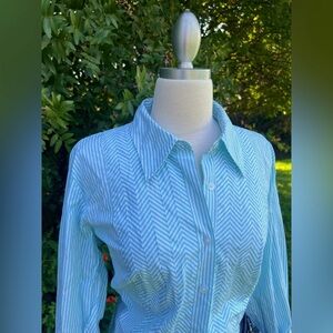 TALBOTS- Aqua Blue & White Button Down Shirt