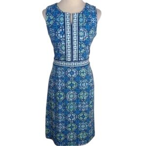 TALBOTS BLUE & WHITE MEDALLION FLORAL PRINT SLEEVELESS DRESS NWTS SZ MP