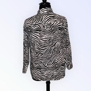 TALBOTS BUTTON FRONT ZEBRA SHIRT - Plus 1X Black/White