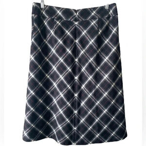 TALBOTS | Beyond Retro Vintage Wool Blend Midi Plaid Skater Black Skirt Size 16P