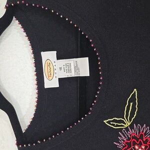 TALBOTS Black Embroidered Floral Beaded Lightweight Sweater, Size 1X