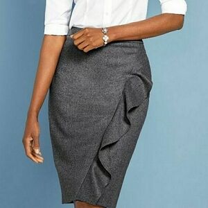 TALBOTS Wool Skirt Cascading Side Ruffle Black Ivory Tweed