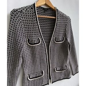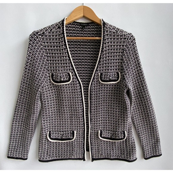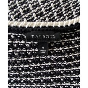 TALBOTS Black & White Heavy Knit Open Front Cardigan Sweater Jacket Size M