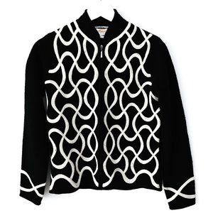 TALBOTS Black Zip Up Wool Sweater Jacket with Sartouche Braid - Size Petite Medium