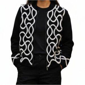 TALBOTS Black Zip Up Wool SweaterJacket with Sartouche Braid - Size PM